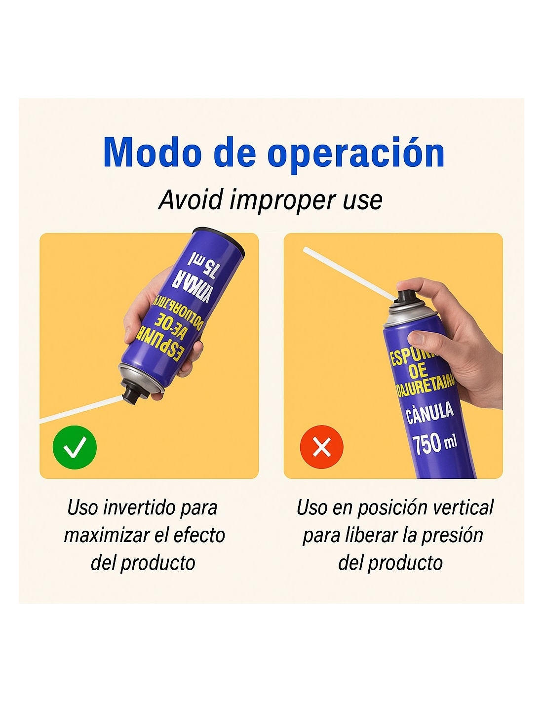 La espuma de poliuretano de alta expansión es una solución versátil y eficiente para una variedad de proyectos de construcción y reparación. Diseñada para ofrecer un sellado hermético y un aislamiento superior, esta espuma es ideal para rellenar huecos, grietas y juntas en diferentes superficies. Su aplicación es sencilla gracias a la cánula incluida, lo que permite un uso preciso y controlado.