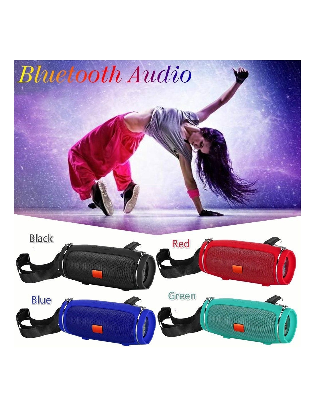 Lleva tu música a todas partes con el altavoz EA-J009, un modelo compacto y moderno disponible en negro, rojo, azul y verde. Ofrece conectividad Bluetooth, entrada AUX, USB, tarjeta TF y sintonizador de radio FM, ideal para cualquier ocasión.