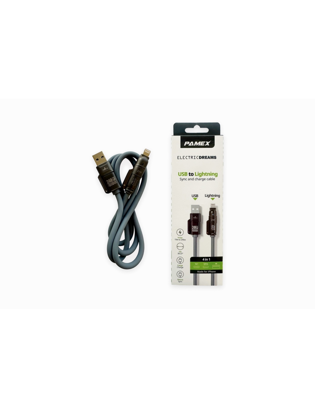 Diseño duradero con protección contra sobrecargas. Ideal para usuarios que necesitan un solo cable para todo: carga rápida de iPhone, sincronización y compatibilidad con cargadores de alta potencia.