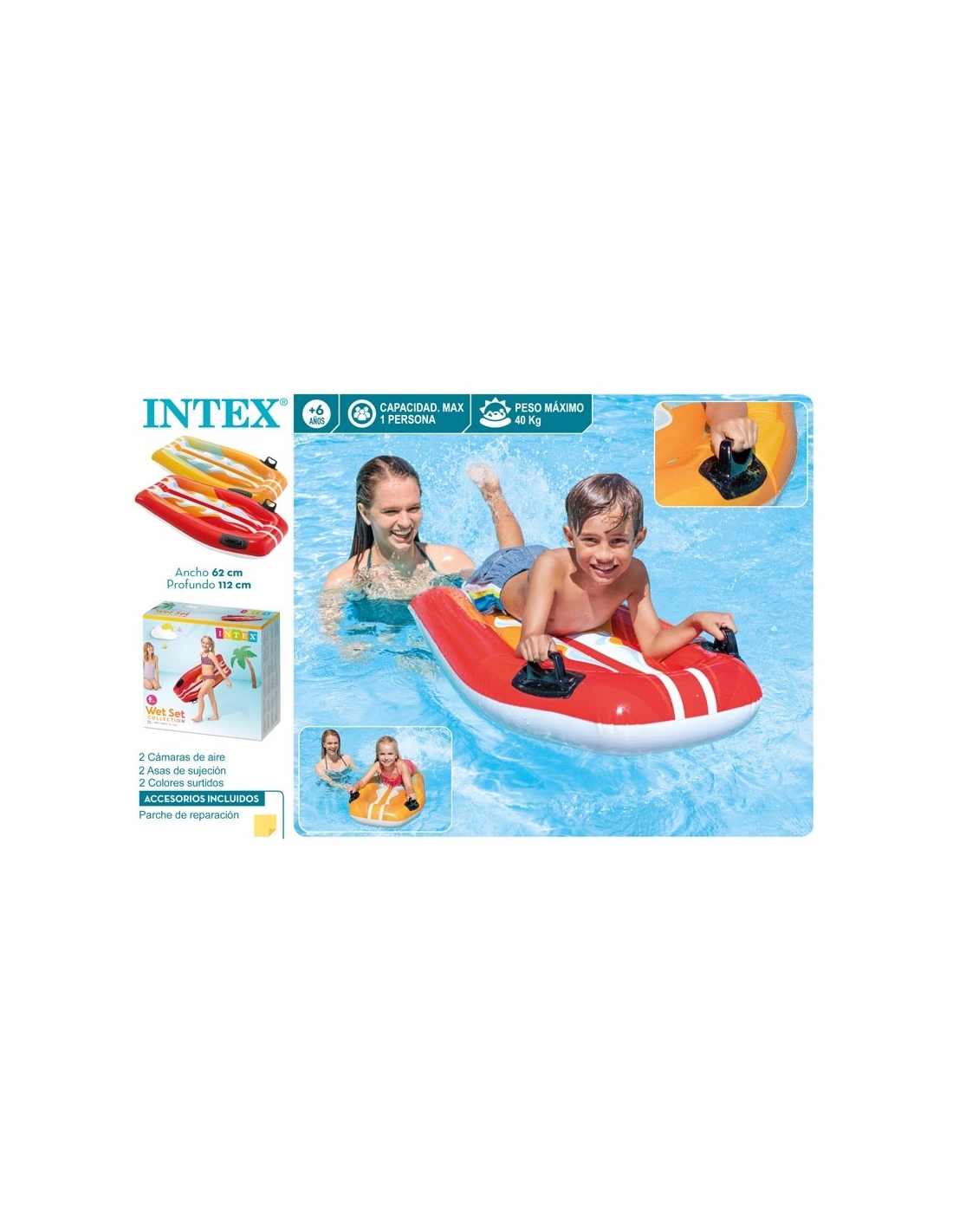 Perfecto para niños a partir de los 6 años. Soporta un peso máximo de 40 kg. Incluye parche para reparación en caso de pinchazo.