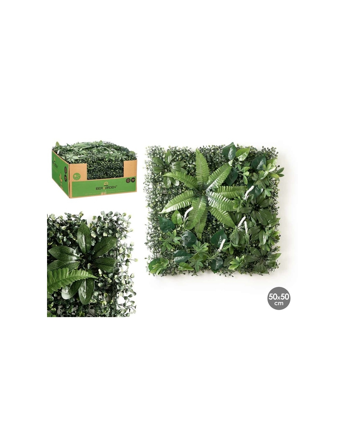Jardín vertical con hoja helecho para decorar cualquier superficie, ideal para decorad paredes interiores o exteriores. Medidas: 50x50cm