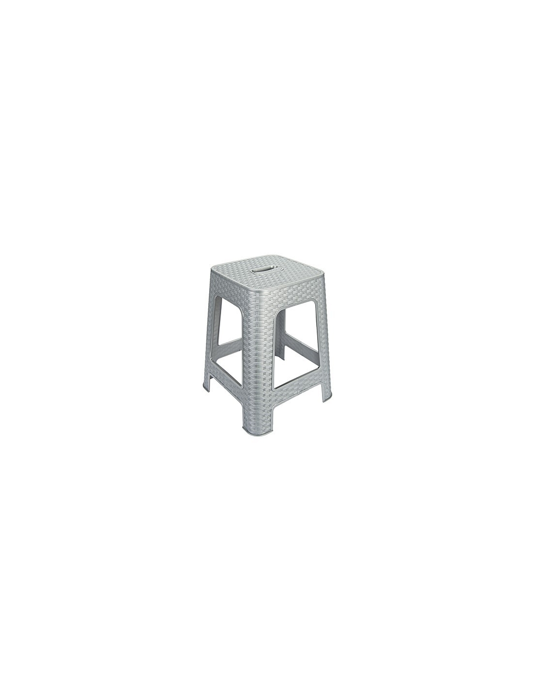 Este taburete gris de estilo rattan es la combinación perfecta entre diseño y funcionalidad. Aporta un toque moderno a cocinas, baños o espacios exteriores. Ligero, resistente y apilable para facilitar su almacenamiento. Medidas: 36,74 x 36,74 x 45,5 cm.
