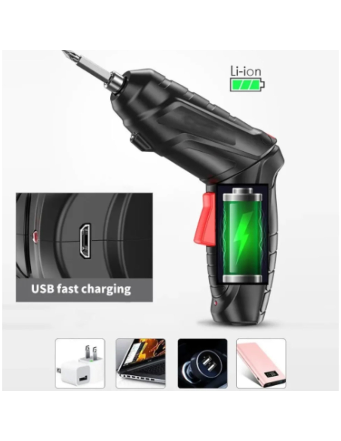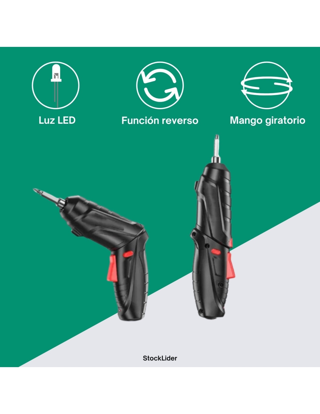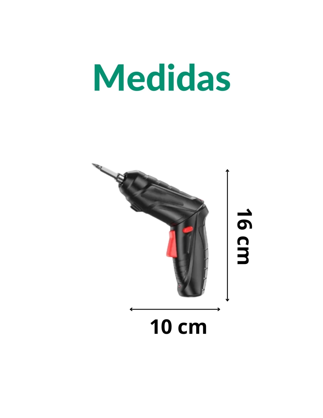 Potencia y comodidad en un solo herramienta. Este destornillador eléctrico sin cables cuenta con luz LED integrada que se activa al presionar el gatillo, facilitando el trabajo en espacios oscuros y mejorando la precisión y seguridad.
