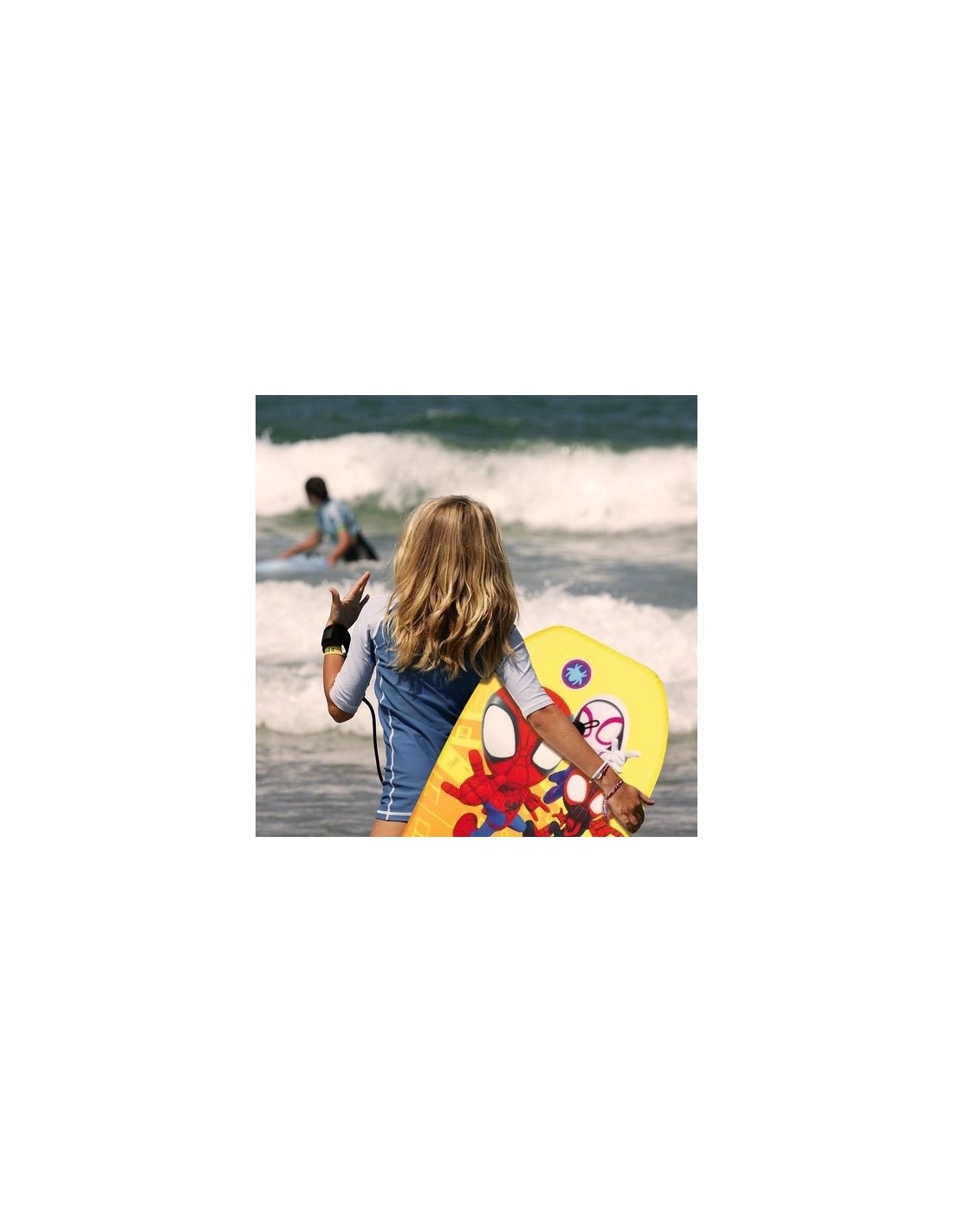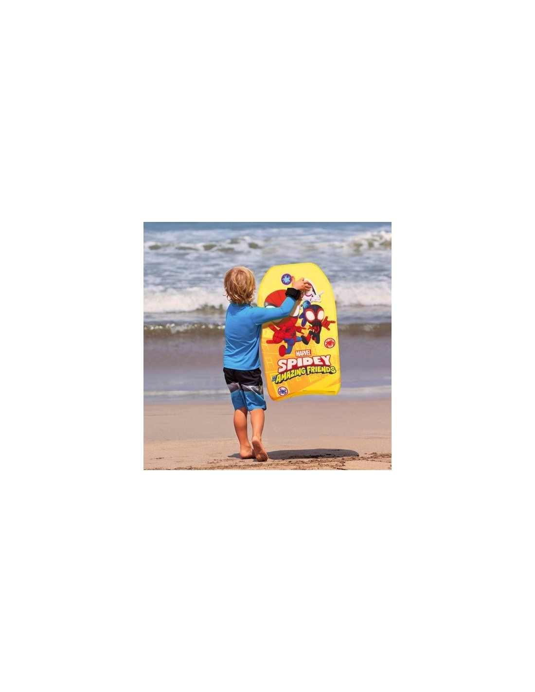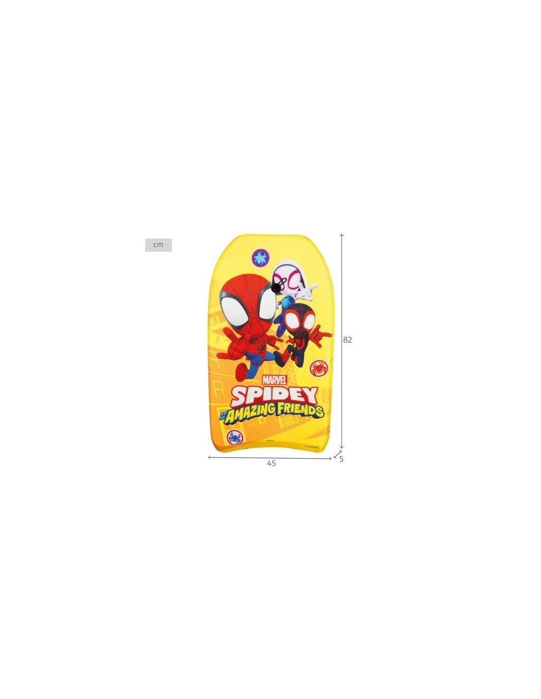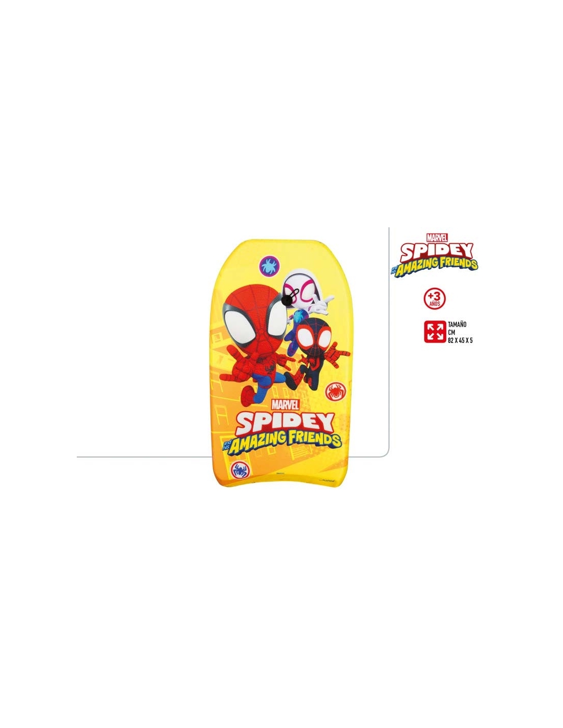 Los pequeños superhéroes podrán deslizarse sobre las olas con este increíble bodyboard de Spidey & Friends. Con un diseño llamativo y vibrante protagonizado por Spidey, Ghost-Spider y Miles Morales, este bodyboard es el accesorio perfecto para disfrutar de la playa o la piscina.